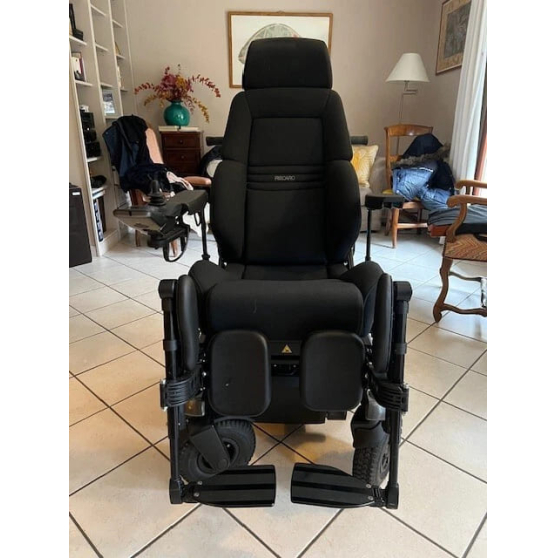Nombreuses options (lift électrique + bascule 45°, reposes jambes électriques, kit éclairage, stabilisation de trajectoire électrique gyro, modification de l'assise pour insérer un coussin à air...)